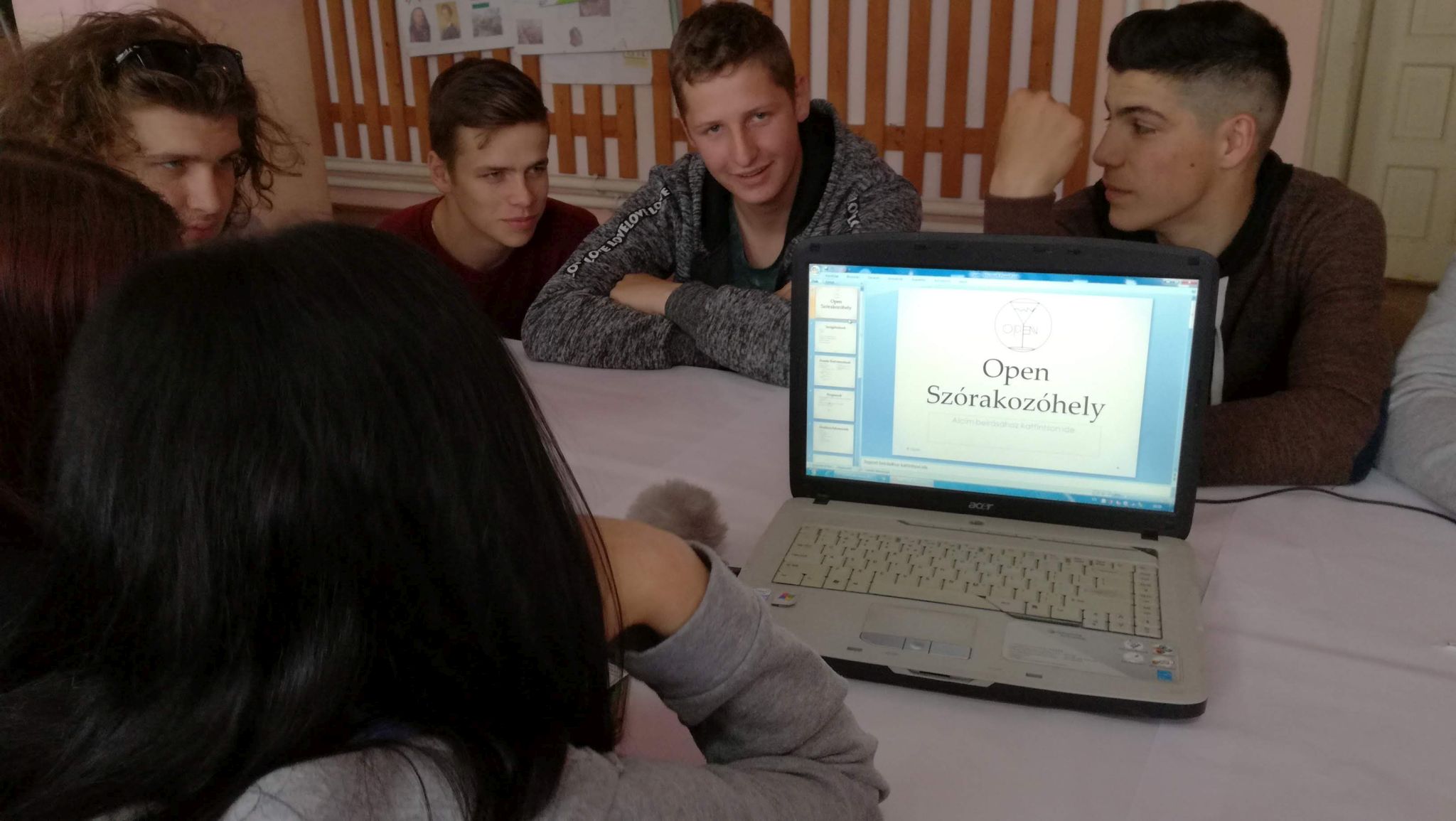 A színházteremben dolgoztak a csapatok, laptopon, telefonon és nagyon jó hangulatban.