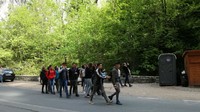 A délutáni programra visszasétáltunk Csíkkarcfalvára, ahol a helyi diákok idegenvezetésével megnéztük a Vártemplomot, és a Jégcsarnokot.