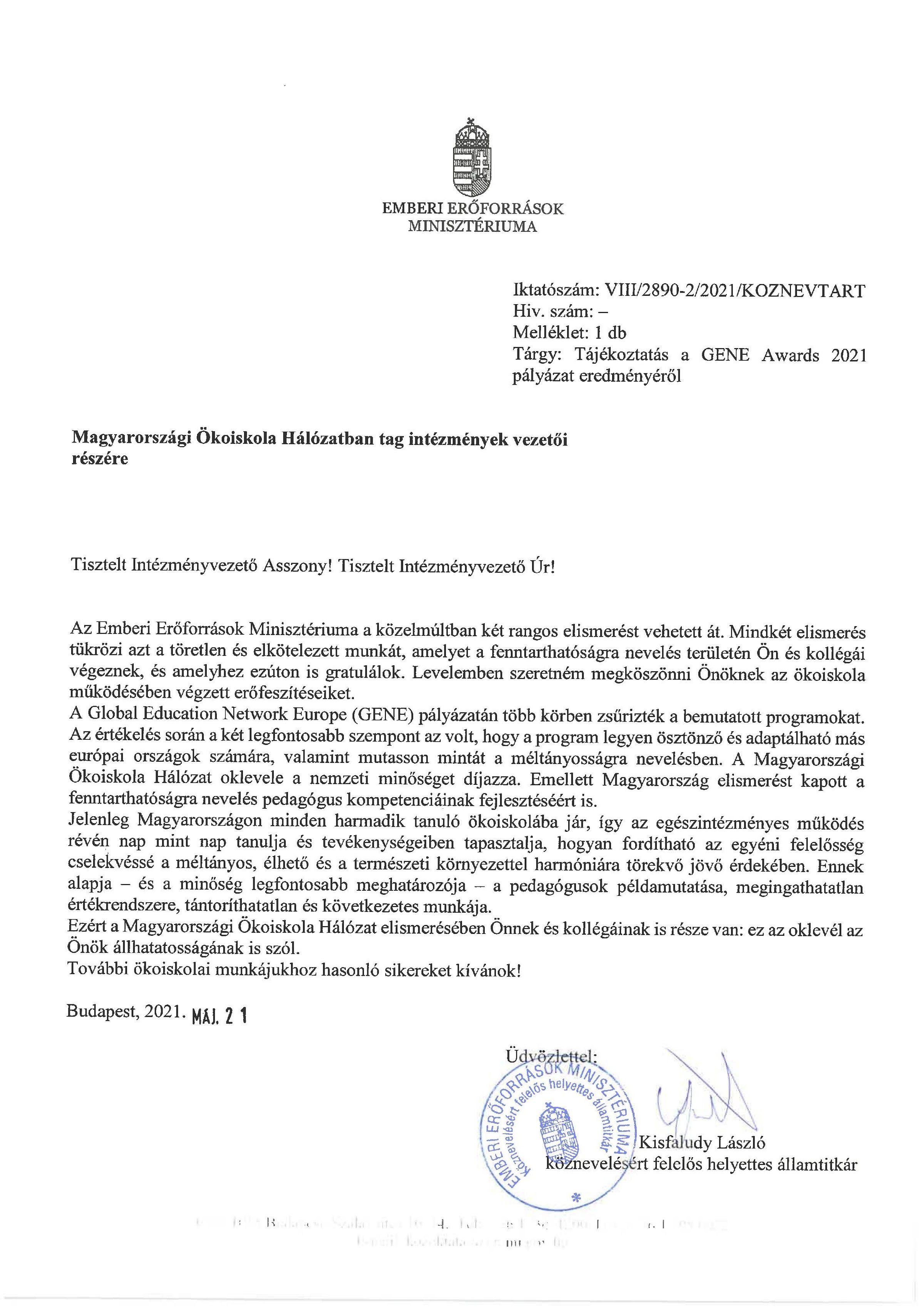 A versenyen a projektet és a kezdeményezést megdicsérte a bizottság és további ötleteket adott a továbbfejlesztéshez.